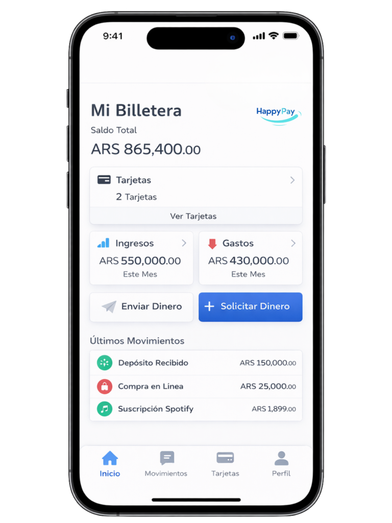 HappyPay es una forma simple, rápida y segura de gestionar tu dinero desde un solo lugar. Pensada para personas y negocios que buscan orden, eficiencia y control, la app te permite operar sin vueltas y sin complicaciones desde el primer momento.
